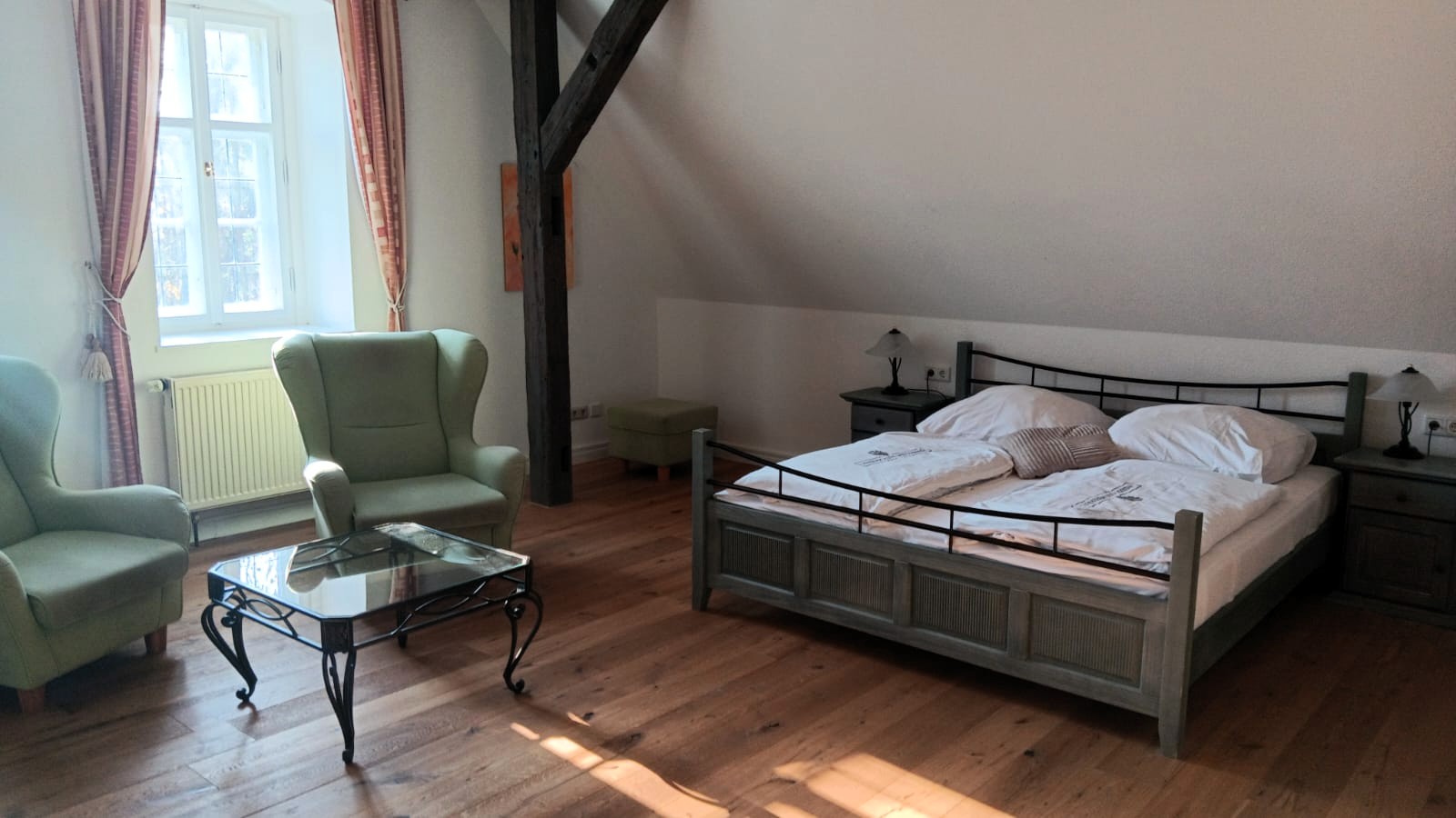 Das Torhauszimmer ist geschmackvoll eingerichtet und bietet modernen Komfort für Ihren Aufenthalt. Entspannen Sie sich in diesem gemütlichen Zimmer und genießen Sie die Ruhe und die malerische Umgebung.